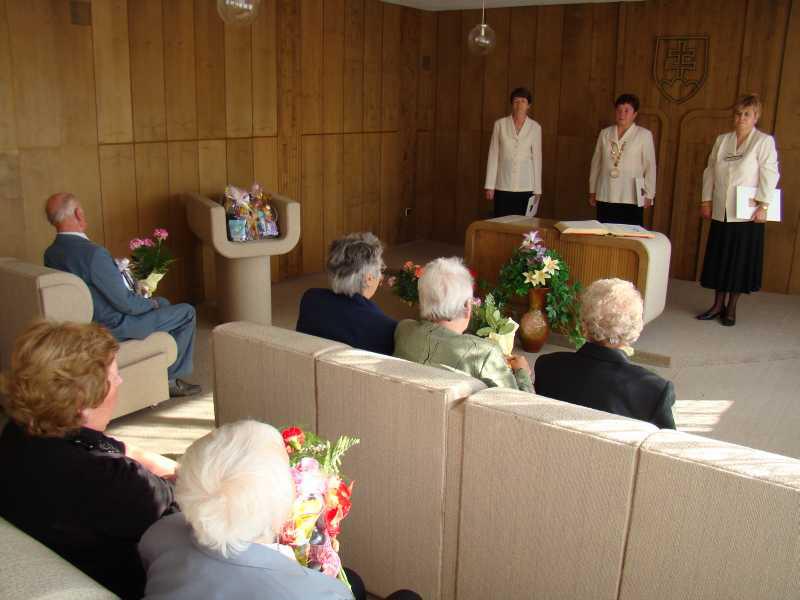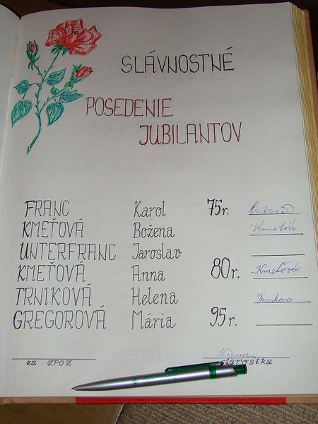 Posedenie jubilantov sa nieslo v príjemnej atmosfére a bolo spojené aj so slávnostným zápisom do pamätnej knihy obce.