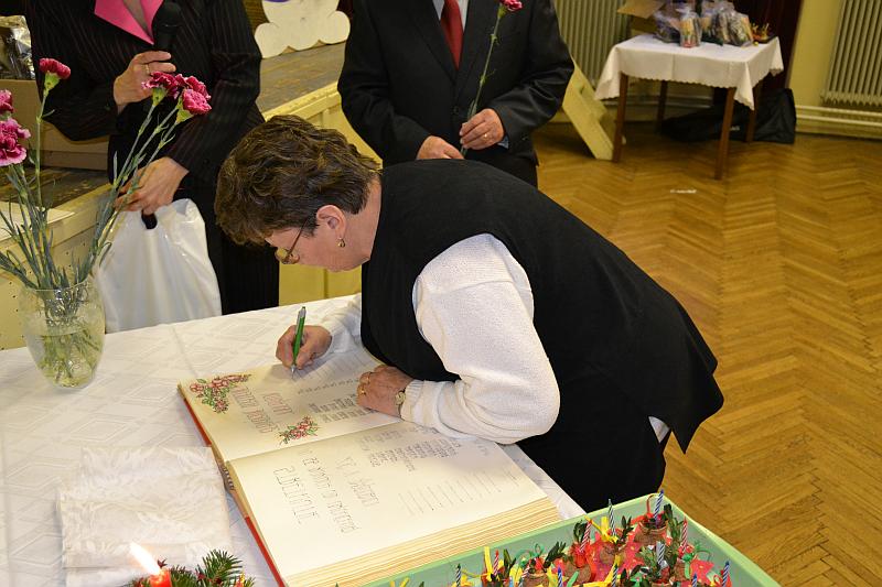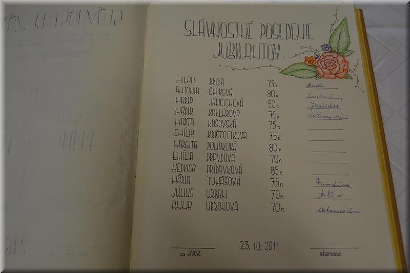 Posedenie jubilantov sa nieslo v príjemnej atmosfére a bolo spojené aj so slávnostným zápisom do pamätnej knihy obce.