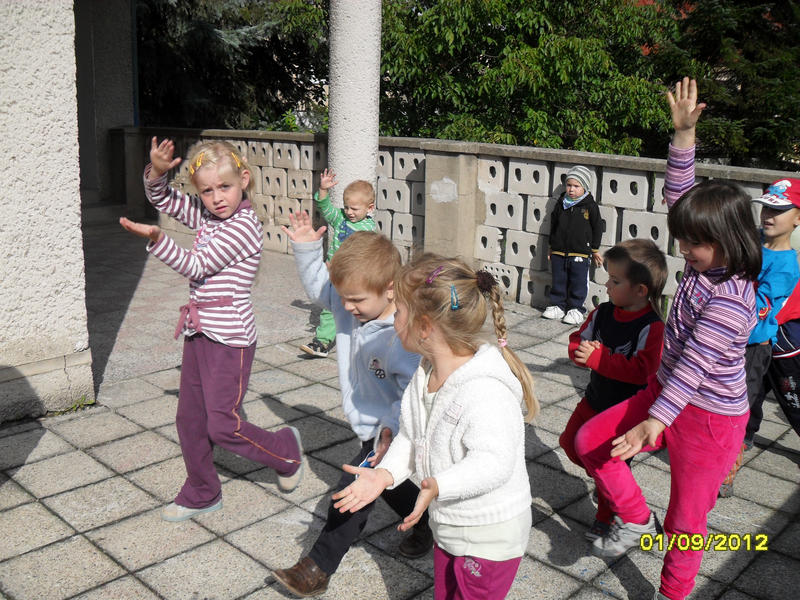 TAKTO SA HRÁME RôZNE POHYBOVÉ A HUDOBNO–POHYBOVÉ HRY NA TERASE ,NA ŠKOLSKOM DVORE