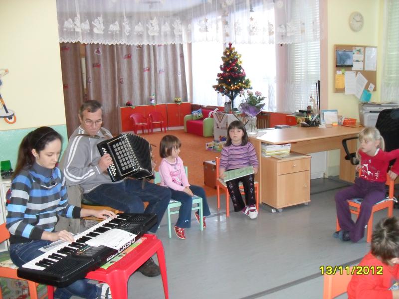 Vianočné melódie nám zahrali a tak spríjemnili popoludnie J.URBAN st.s vnučkou a bývalou škôlkárkou M.BRIDOVOU.