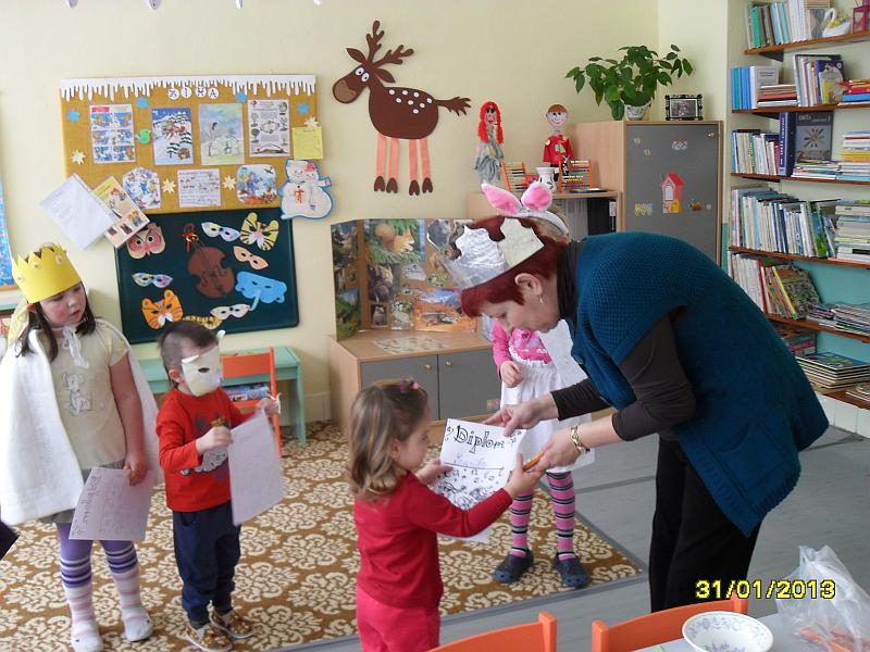 DŇA 31.1.2013 SME PRE DETI V MŠ PRIPRAVILI "FAŠIANGOVÝ KARNEVAL".DETI SÚŤAŽILI,TANCOVALI A ZA ODMENU SI POMAŠKRTILI NA PRIPRAVENÝCH SLADKÝCH ODMENÁCH.