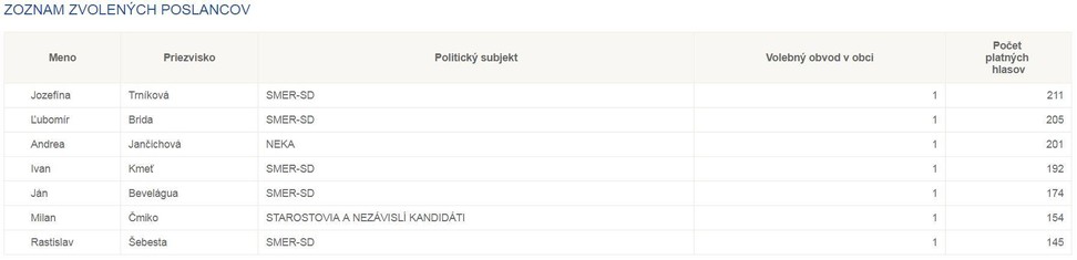 Za poslancov obecného zastupiteľstva boli zvolený: