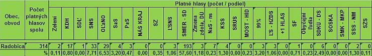 Výsledky hlasovania v obci Radobica