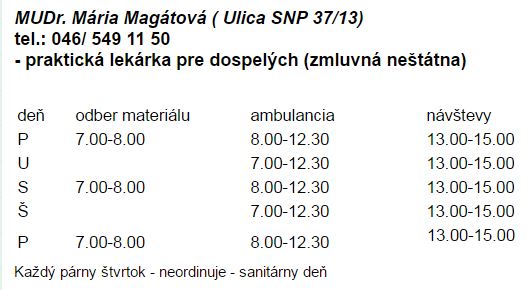 Zdravotná ambulancia v Obci Oslany